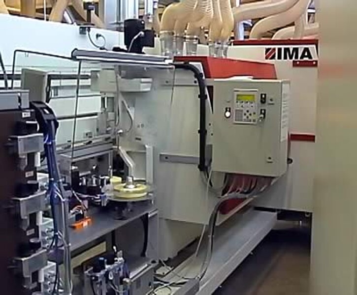 The doors are marked with a 35x346 mm label on passing the labelling machine. The labels are printed in accordance with code 128 and in clear type. The code is used by the customer both for internal warehousing logistics and for door processing operations. It stores specific, part-related data which are read out at the processing stations and which initiate the corresponding work stages.
